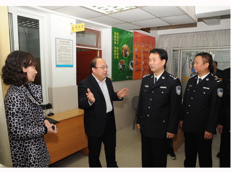 10月23日,省长助理、公安厅党委书记、厅长杜航伟率领厅办公室、研究室、经文保总队主要负责人,深入西安交通大学调研指导高校反恐维稳安保工作。西安交通大学党委书记张迈曾、校长王树国、党委副书记宫辉等领导陪同调研。