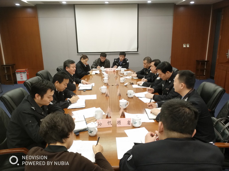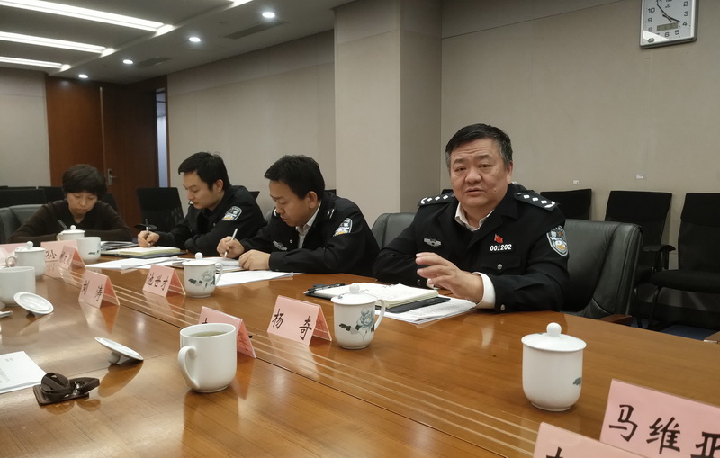 李向阳副厅长一行首先向局主要负责人李京生同志汇报了我省经文保工作总体情况,介绍了我省重点单位治安保卫工作的形势和特点。李京生同志围绕当前学习贯彻落实党的十九大精神,谈了进一步做好治安管理工作的总体思路和打算,特别强调了部党委书记、部长赵克志11月13日到局看望慰问调研时就重视和加强企事业单位内部治安保卫工作作出的重要指示。