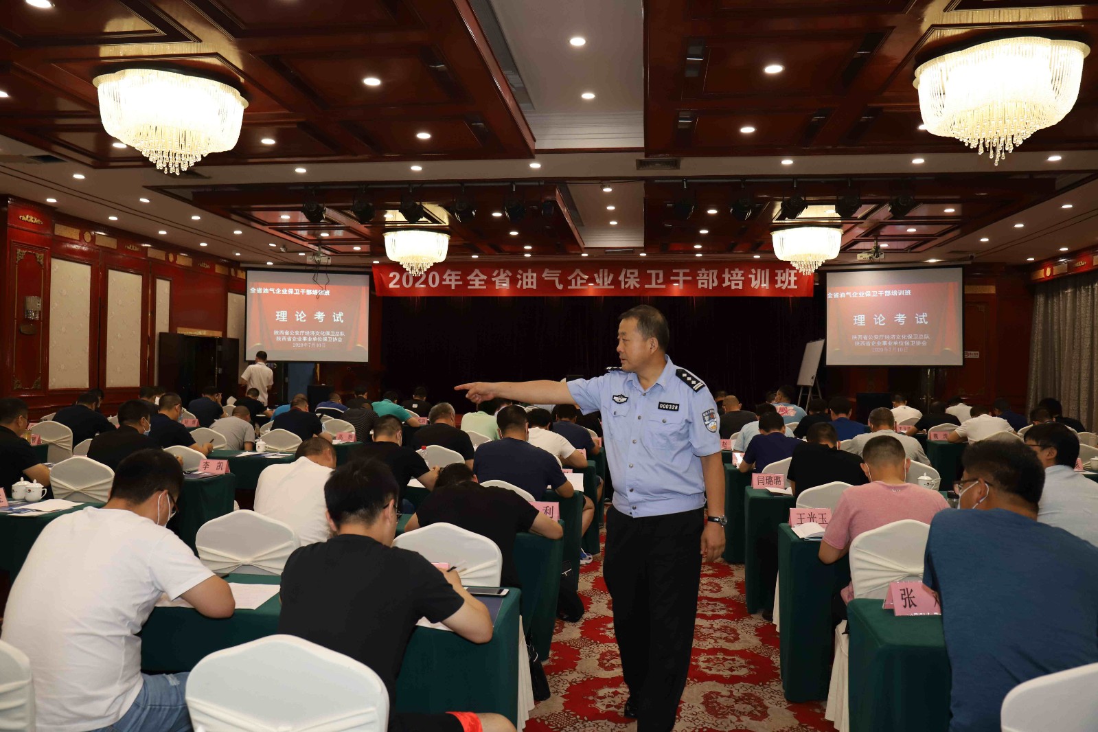 为全面加强保卫队伍建设,提高保卫人员的职业能力和综合素质,夯实全省油气安全保卫工作,省公安厅经文保总队于2020年7月7日至10日在陕西警苑饭店举办2020年全省油气企业保卫人员业务培训班,来自全省各市(区)共118名油气企业保卫人员参加了培训。在开班典礼上,省公安厅经文保总队副总队长陆洋进行了培训动员,省保卫协会副会长、金盾安保集团董事长高湛进行了发言,省发改委能源局油气处处长黑喜生、省公安厅经文保总队工业能源科科长庞景刚、省公安厅经文保总队队伍管理科科长惠琳出席了开班典礼。会议由省公安厅经文保总队朱兆利主持。